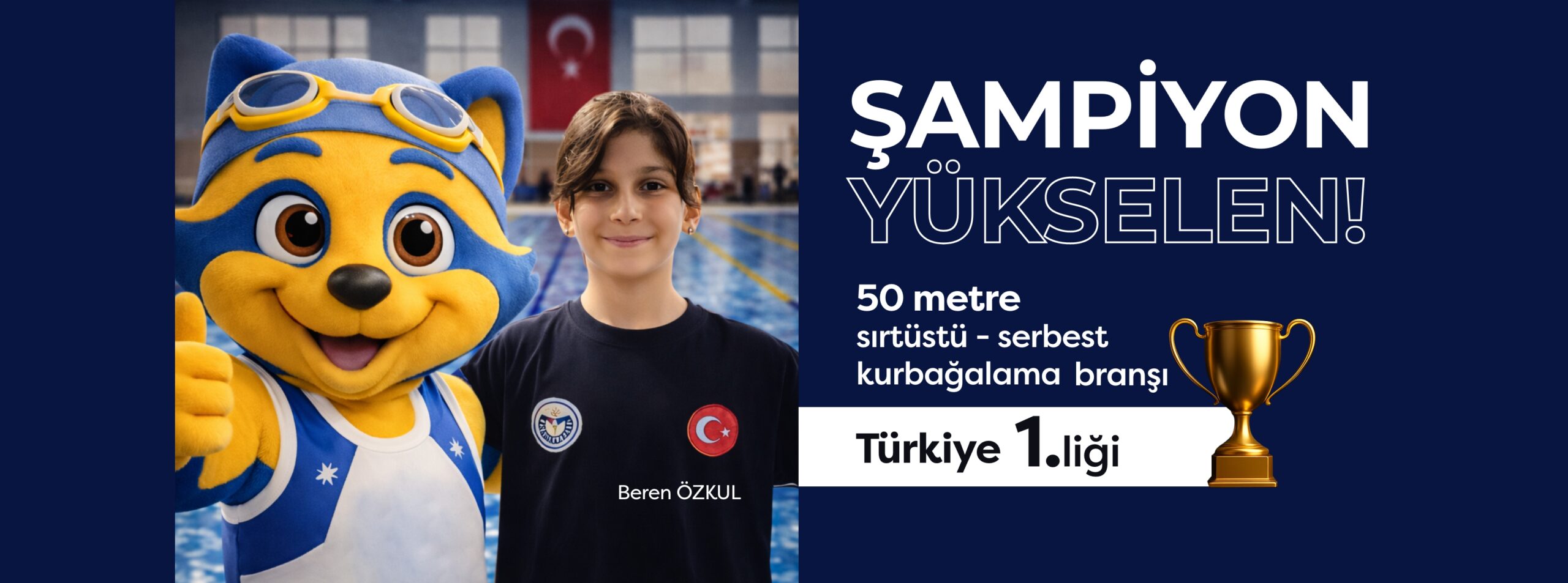 Öğrencimiz Beren Özkul’u, üç farklı branşta Türkiye birinciliği elde ederek gösterdiği üstün performans ve azmi için yürekten tebrik ediyor; bu önemli başarıda emeği büyük olan değerli yüzme antrenörümüz Sercan Bilgen’e de katkıları ve özverili çalışmaları için teşekkür ediyoruz.