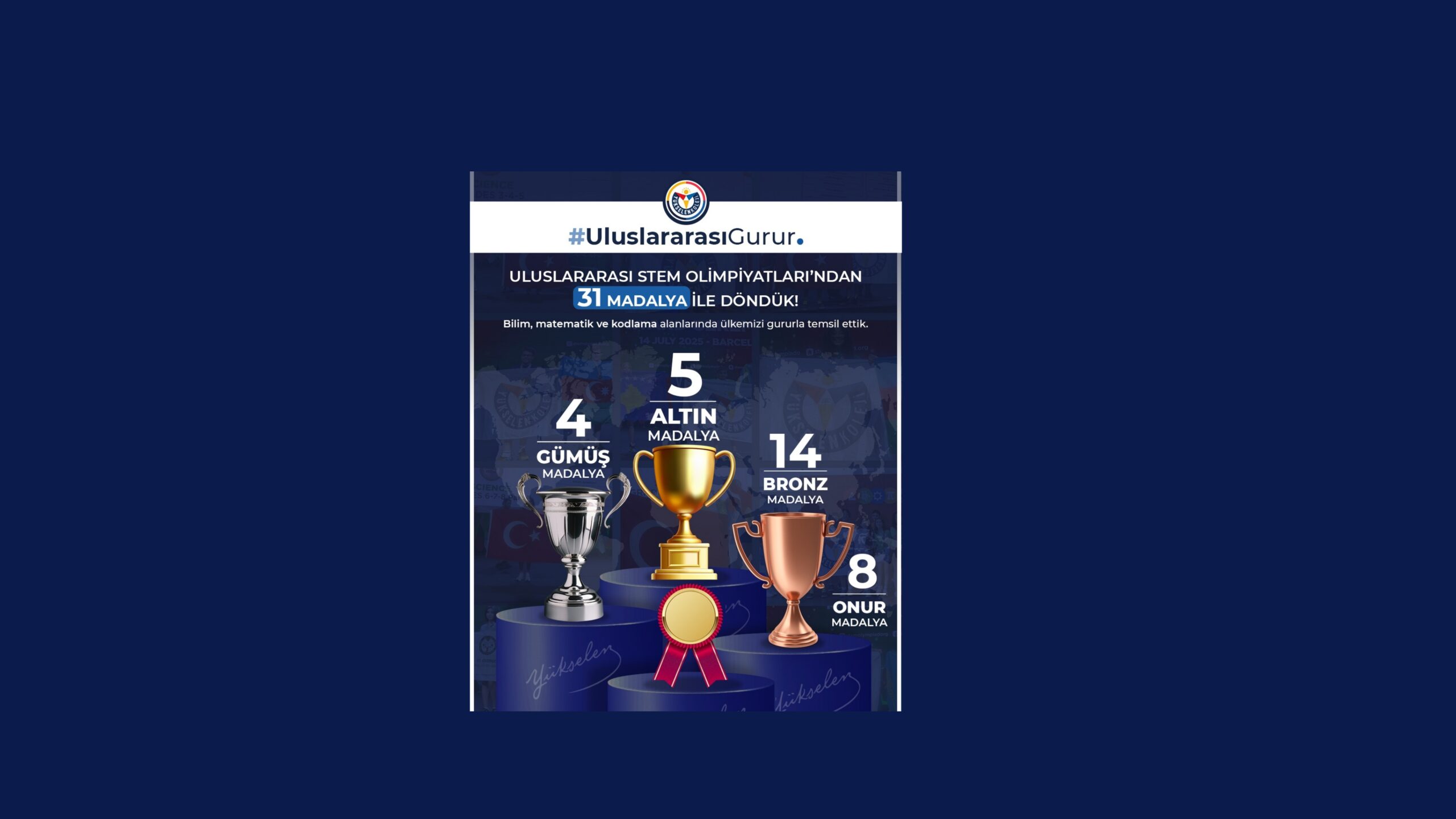 Yükselen Koleji olarak, ülkemizi uluslararası platformda başarıyla temsil eden tüm öğrencilerimizi ve emeği geçen öğretmenlerimizi yürekten kutluyoruz.